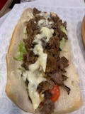 Mozzarella, green peppers, mushrooms, onions, and steak.
